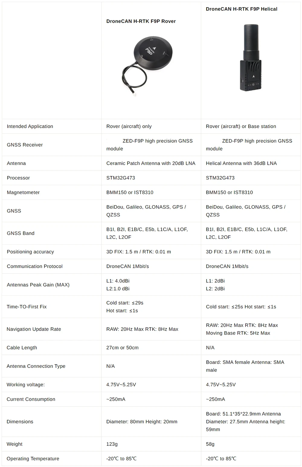 Wir haben zwei Modelle des DroneCAN H-RTK F9P zur Auswahl entwickelt, jedes mit unterschiedlicher Größe und Antennendesign, um den unterschiedlichen Kundenbedürfnissen gerecht zu werden.