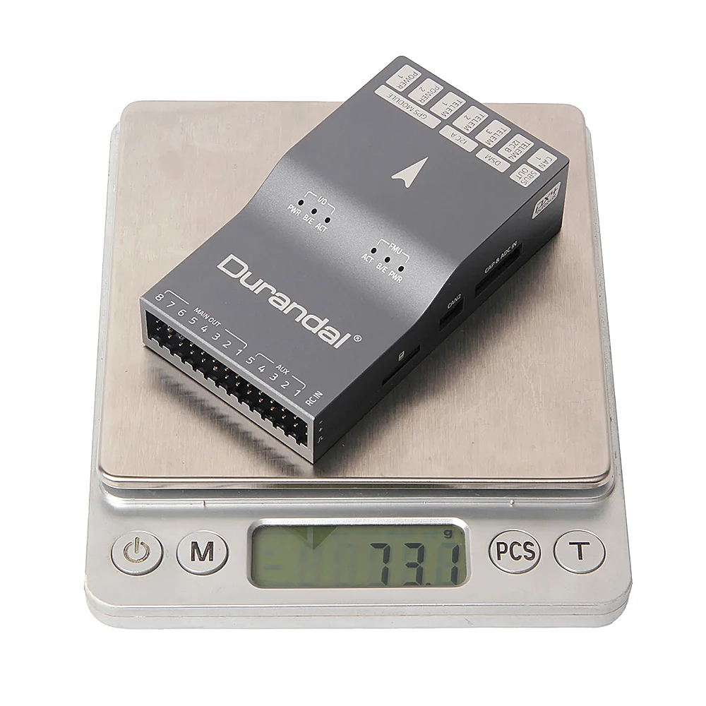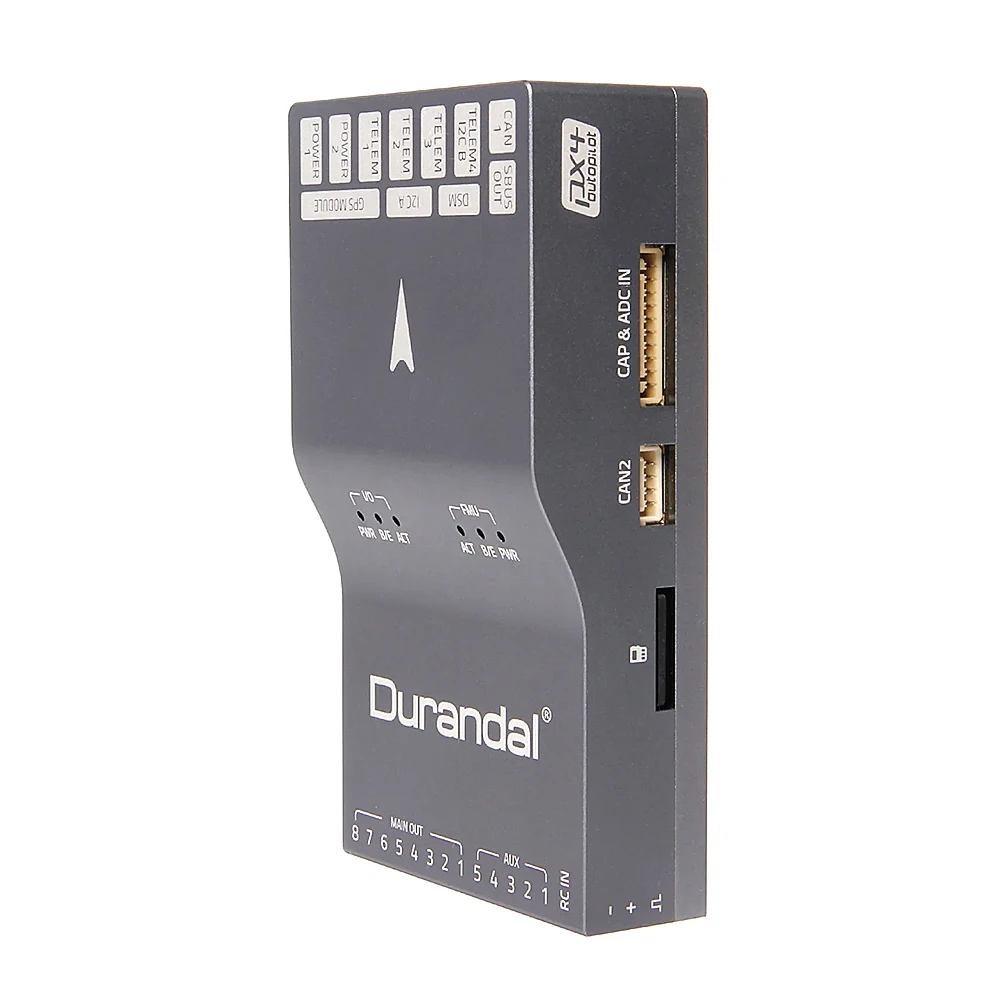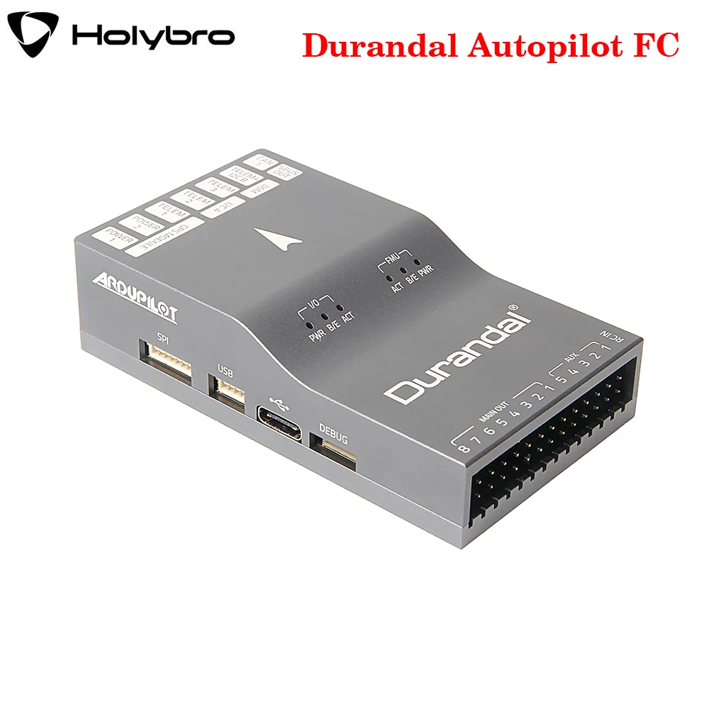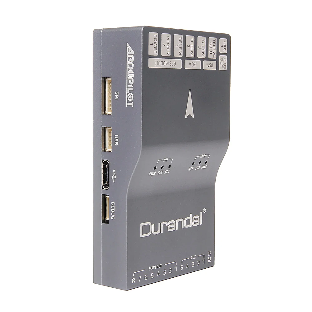 Durandal is a flight controller designed by Holybro utilizing the STM32H7 microcontroller series. It comes with built-in vibration isolation system and integrated IMU heater for sensors temperature control.