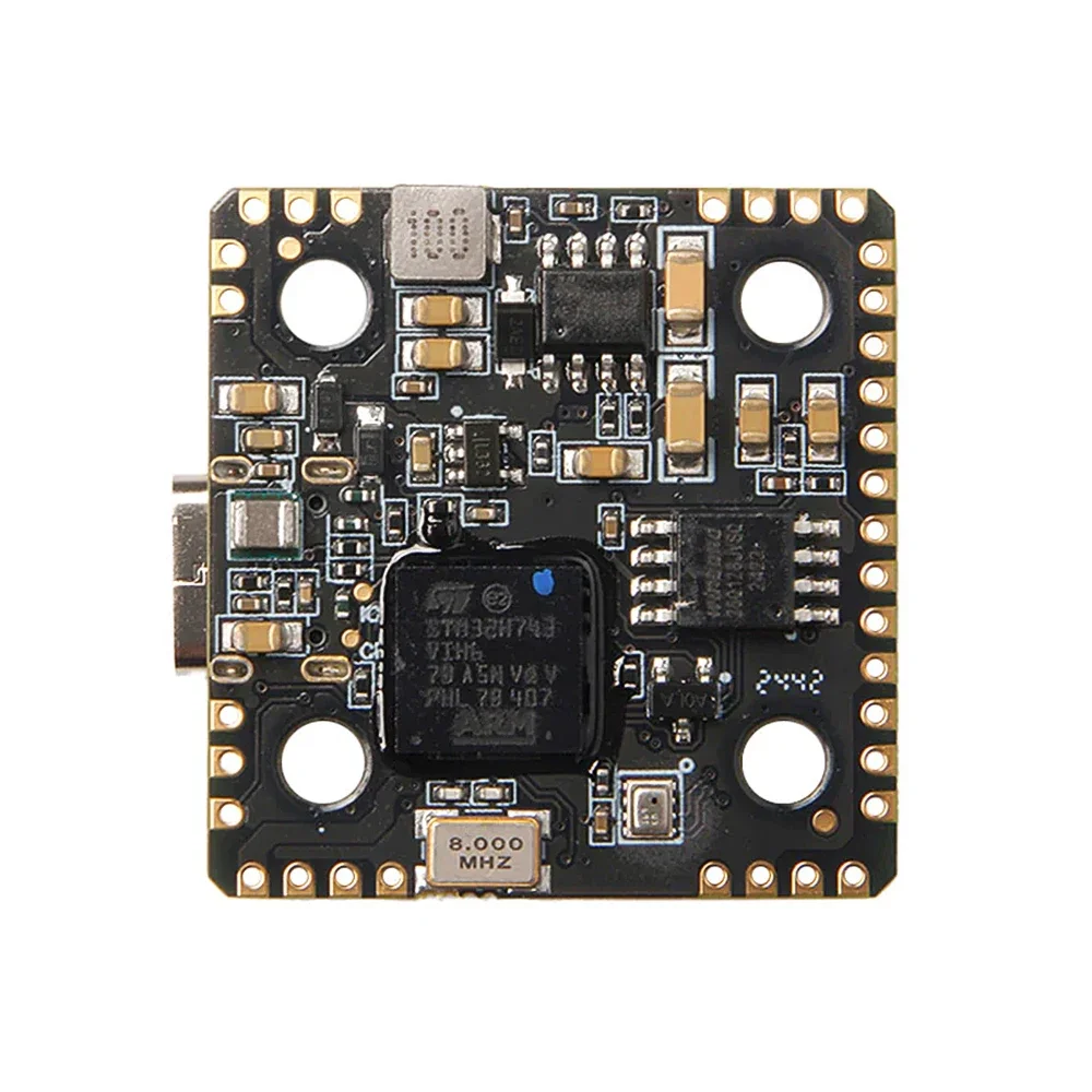 The Kakute H7 Mini builds upon the best features of its F7 predecessor and further improves on hardware components and layout. HD ready, it has an easy plug to power HD system like Caddx Vista while supporting analog system. It features an onboard "VTX ON/OFF Pit Switch" that allows you to completely power off the video transmitter using a switch on your RC transmitter. Great if you are working on your drone, waiting for the GPS to get a fix, getting ready for a race while preventing it from overheating or interfering with others flying.It has 6x dedicated UART ports with built-in inversion for peripherals, 4in1 ESC plug, and x8 compatible with M5-M8 Signal Pads, allowing easy support for x8 Octocopter configuration. The integrated BetaFlight OSD makes it easy to display important information on your FPV display like battery voltage, flight time, warnings, RSSI, smart audio features and more. It is also ready for autonomous flight with the on-board barometer. There are LED & buzzer pad, I2C pad (SDA & SCL) for external GPS/Magnetometers.