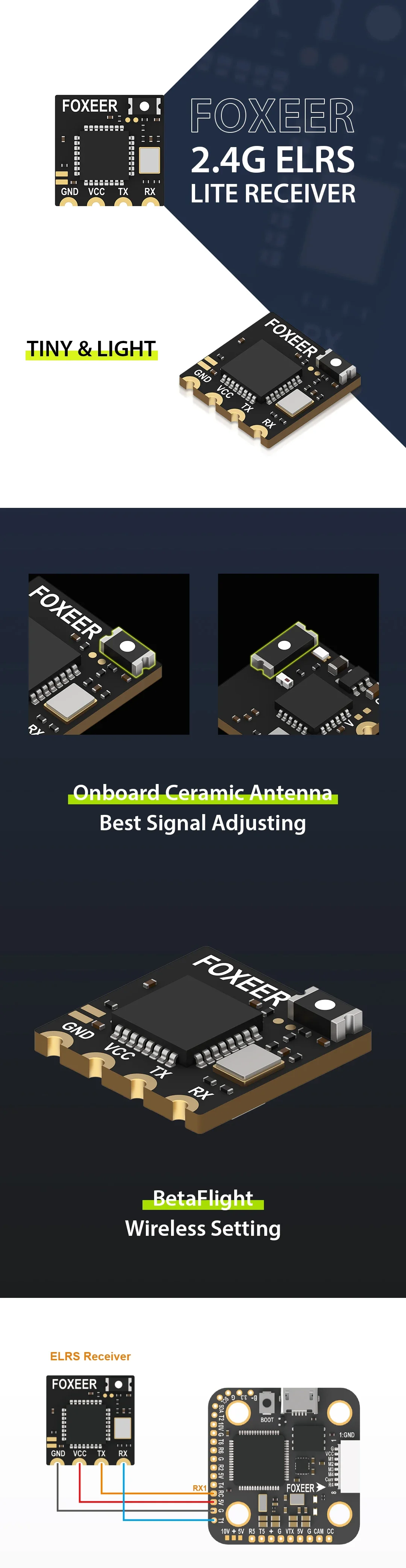 FOXEER ELRS Lite 2.4G Receiver ESP8285+SX1280 2400GHz-2500GHz 5V for ELRS 2.4G TX RC FPV Freestyle Long Range Drone